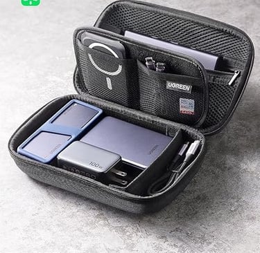 Para llevar cargadores, cables, power bank y auriculares juntos,